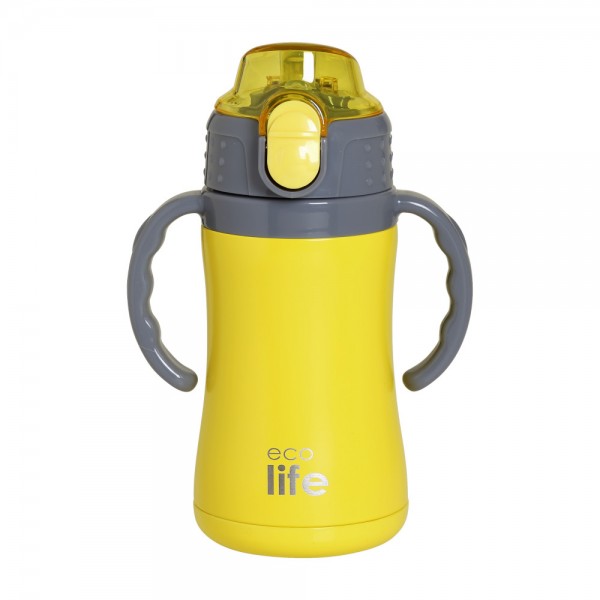 Ανοξείδωτο παιδικό παγούρι θερμός 300ml της Ecolife! Με διπλά τοιχώματα για διατήρηση της θερμοκρασίας για πολλές ώρες! Με εσωτερικό, μαλακό καλαμάκι από σιλικόνη και ευκολία στη χρήση με κλείσιμο με ένα "κλικ". Με χερουλάκια για ανατομικό κράτημα. Κατασκευασμένο από ανοξείδωτο ατσάλι 304 (18/8 stainless steel). Xωρίς δισφαινόλη & καρκινογόνες ουσίες (ΒPA free). 100% υγιεινή επιλογή για μωρά & μικρά παιδιά.