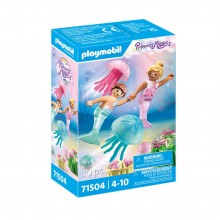 Βυθιστείτε σε διασκεδαστικές περιπέτειες με τις Μικρές Γοργόνες με τις Μέδουσες από την PLAYMOBIL. Στο βυθό του ωκεανού, τα δύο παιδιά - γοργόνες ψάχνουν κοχύλια και τα συλλέγουν στο καλάθι τους. Με περιέργεια παρακολουθούν τις δύο μεγάλες μέδουσες που κολυμπούν από μακριά. Ο μαγικός κόσμος των γοργόνων Princess Magic από την PLAYMOBIL προσκαλεί τα παιδιά σε ένα μαγικό υποβρύχιο βασίλειο. Οι φιγούρες και τα ζώα εμπνέουν τα παιδιά να ξεκινήσουν νέες φανταστικές περιπέτειες. Το σετ παιχνιδιού περιλαμβάνει δύο παιδικές φιγούρες, δύο μέδουσες, θαλασσινό λουλούδι, υποβρύχιο φυτό, καλάθι και πολλά άλλα φανταστικά έξτρα. Οι μέδουσες μπορούν να συνδεθούν σε διαφανείς ράβδους για "κολύμπι".