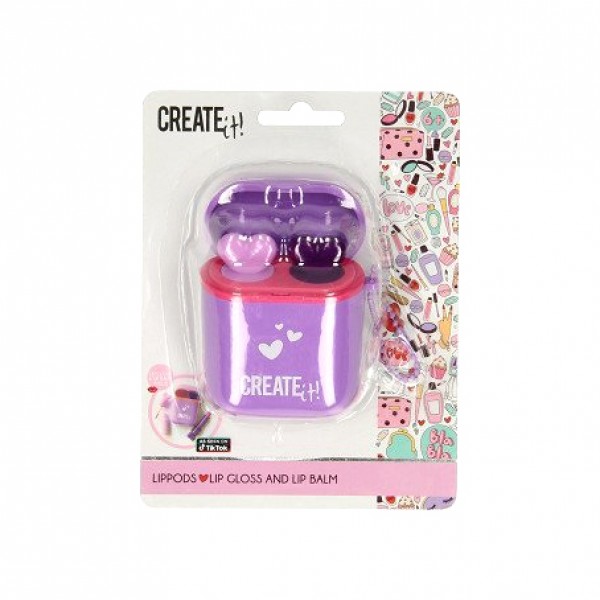 Σετ με lip balm και lip gloss σε θήκη AirPods, από την ολλανδική εταιρεία Create It! Το σετ περιλαμβάνει 1 lip gloss των 2ml και 1 lip balm 1,4g με rasberry.