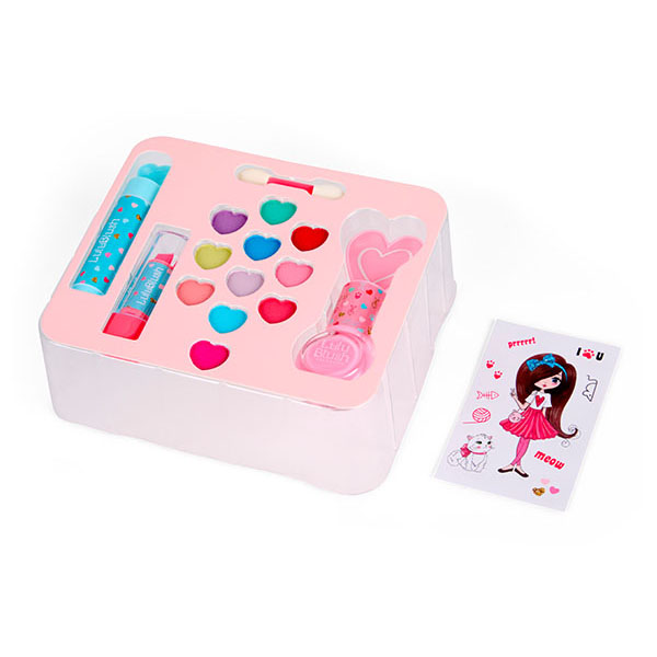 Σετ μακιγιάζ με βάση το νερό, ιδανικό για κορίτσια 3 ετών και πάνω, από την ολλανδική εταιρεία Create It! Το μεταλλικό βαλιτσάκι περιλαμβάνει lipstick 1g, lip balm 4g, βερνίκι νυχιών με βάση το νερό 5ml και σκιές ματιών 0,4g η κάθε μία.