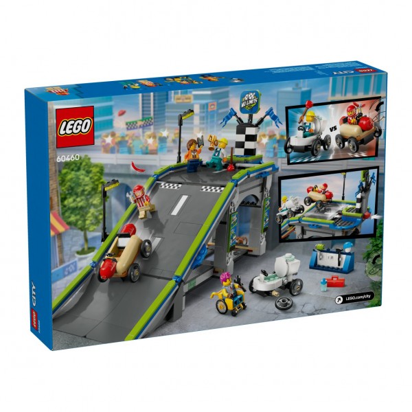Lego City No Limits: Race Car Ramp Track. Δέσε τη ζώνη σου για μια αναμέτρηση soapbox με το LEGO® City Χωρίς Όρια: Πίστα με Ράμπα για Αγωνιστικά Αυτοκίνητα! Οι αστικοί αγώνες κατέφτασαν στη LEGO City και οι δρόμοι βουίζουν από ενθουσιασμό! Βάλε τα αυτοκίνητα αγώνων soapbox χοτ ντογκ και τουαλέτα στην κορυφή της τεράστιας ράμπας, πάτα τον μοχλό και άρχισε τον αγώνα! Ποιος θα τερματίσει πρώτος; Ο υδραυλικός ή ο πωλητής χοτ ντογκ;