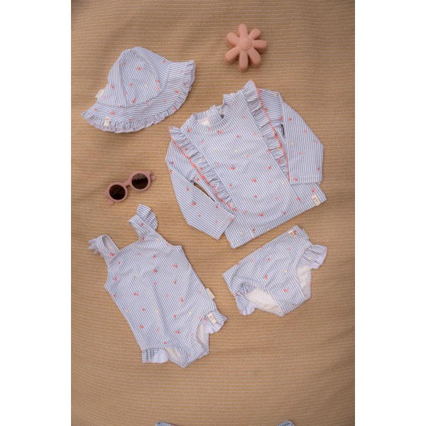 Αυτό το μακρυμάνικο μπλουζάκι είναι ιδανικό για ατελείωτες περιπέτειες στην παραλία. Φτιαγμένο από απαλό, ελαστικό ύφασμα, εξασφαλίζει άνεση και ελευθερία κίνησης όλη μέρα. Τα εύχρηστα κουμπάκια διευκολύνουν το ντύσιμο, ακόμα και όταν το μικρό σας είναι βρεγμένο.
