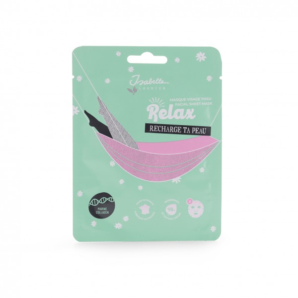 Χαλάρωση και αναζωογόνηση σε μία μόνο εφαρμογή! Η Relax – Collagen υφασμάτινη μάσκα ομορφιάς της Isabelle Laurier προσφέρει άμεση τόνωση και ελαστικότητα στην επιδερμίδα χάρη στο κολλαγόνο, ενώ ταυτόχρονα χαλαρώνει τις αισθήσεις σου.
