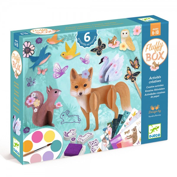 Καλλιτεχνικό σετ από την εταιρεία Djeco, γεμάτο δραστηριότητες και δημιουργικές ιδέες εμπνευσμένες από τα ζωάκια του δάσους. Το σετ περιλαμβάνει 6 διαφορετικές τεχνικές – ζωγραφική, σχέδιο, κολλάζ, κάρτες ξυστό, τρισδιάστατες φιγούρες και σκηνές – ώστε κάθε παιδί να βρει τη δική του αγαπημένη. Με εύκολες οδηγίες βήμα-βήμα, τα παιδιά εξερευνούν νέες δημιουργικές μεθόδους, εκφράζουν τη φαντασία τους και απολαμβάνουν ώρες καλλιτεχνικής απασχόλησης με όλο τον απαραίτητο εξοπλισμό. Περιεχόμενα συσκευασίας: Ζωγραφική: 1 ταμπλό, 1 παλέτα με 6 δισκία τέμπερας και πινέλο. Κάρτες ξυστό: 2 κάρτες με εφέ μετάλλου και 1 ξύλινο στυλό. Ζωάκια προς συναρμολόγηση: 3 φύλλα προκομμένου χαρτονιού. Κολλάζ: 1 ταμπλό με αυτοκόλλητες περιοχές και 4 φύλλα χρωματισμένου foil. Σχέδιο: 1 τρίπτυχο ταμπλό, 10 σφραγίδες αφρού και 1 μελάνι σε μαξιλαράκι. 3D εικόνες: 2 ταμπλό δραστηριοτήτων, 2 τυπωμένα φύλλα με προκομμένα στοιχεία, 1 φύλλο με αυτοκόλλητα αφρού διπλής όψης. Έγχρωμο βιβλιαράκι οδηγιών βήμα-βήμα.