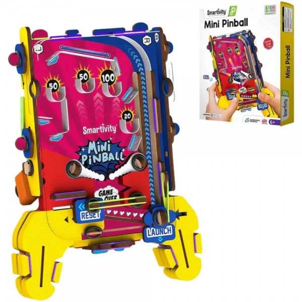 Η Smartivity παρουσιάζει ένα μοναδικό σετ κατασκευής, εμπνευσμένο από την αισθητική των arcade παιχνιδιών: το Mini Pinball! Τα παιδιά κατασκευάζουν βήμα-βήμα το δικό τους φορητό φλίπερ, με 82 ξύλινα εξαρτήματα υψηλής ποιότητας. Τοποθετούν τον εκτοξευτή, ενεργοποιούν τα φλιπεράκια και αφήνουν τη μπίλια να ξεκινήσει την ξέφρενη πορεία της στον πολύχρωμο αγωνιστικό χώρο.
