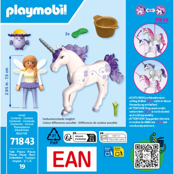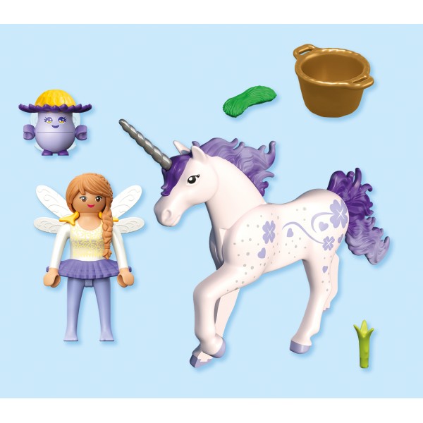 Γνώρισε τον μονόκερο Τυχερή λεβάντα και τη μαγευτική νεραϊδοφίλη! Η Τυχερή λεβάντα φαίνεται να αφήνει παντού όπου εμφανίζεται λίγη περισσότερη τύχη – ένα πραγματικό γούρι για το Βασίλειο των Μονόκερων. Η μαγευτική νεράιδα υποστηρίζεται από τον χαριτωμένο συνοδό της, τον Joyling, που βοηθάει με πολλή χαρά και αφοσίωση στη φροντίδα του μονόκερου. Μπορείς να αλλάζεις τη χαίτη, την ουρά και το κέρατο του μονόκερου. Έτσι μπορείς να δημιουργείς - με άλλους μονόκερους της νέας σειράς μονόκερων PLAYMOBIL - ξεχωριστούς και μοναδικούς μονόκερους!