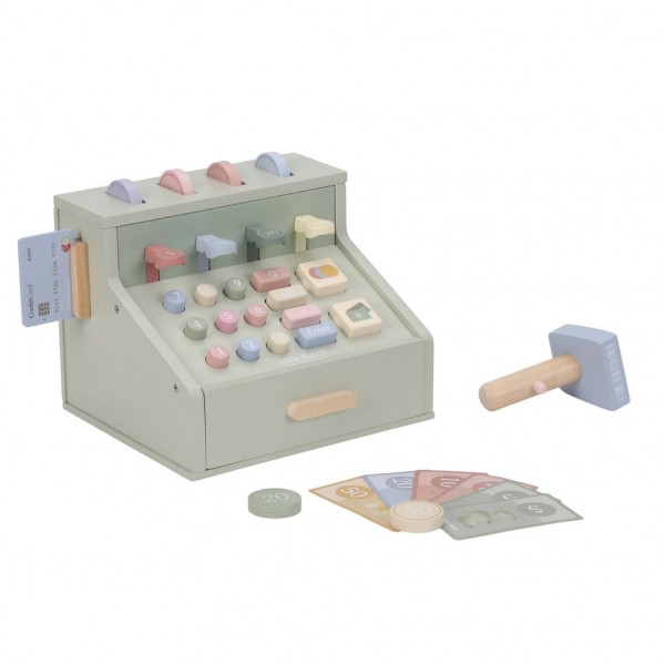 Διαθέτει scanner, υποδοχή για κάρτα, κουμπιά και συρτάρι για κέρματα και χαρτονομίσματα. Επίσης, μια πλαστική κάρτα επιτρέπει στους μικρούς πελάτες να πληρώσουν με μετρητά ή κάρτα.
