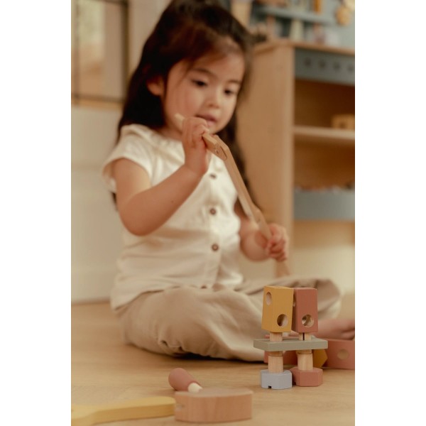 Αποτελείται από 20 ξύλινα εργαλεία με τα οποία το παιδί σας θα παίζει για ατελείωτες ώρες αλλά ταυτόχρονα θα εξασκεί τις κινητικές του δεξιότητες.