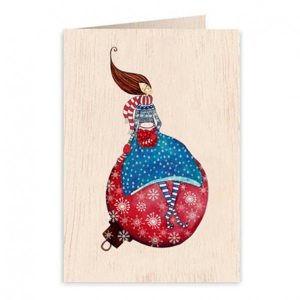 Ξύλινη ευχετήρια κάρτα από την εταιρεία Cozywood. Η κάρτα είναι κατασκευασμένη από επεξεργασμένο ξύλο και ο φάκελος που περιέχεται είναι χάρτινος.