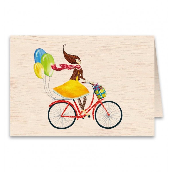 Ξύλινη ευχετήρια κάρτα από την εταιρεία Cozywood. Η κάρτα είναι κατασκευασμένη από επεξεργασμένο ξύλο και ο φάκελος που περιέχεται είναι χάρτινος.