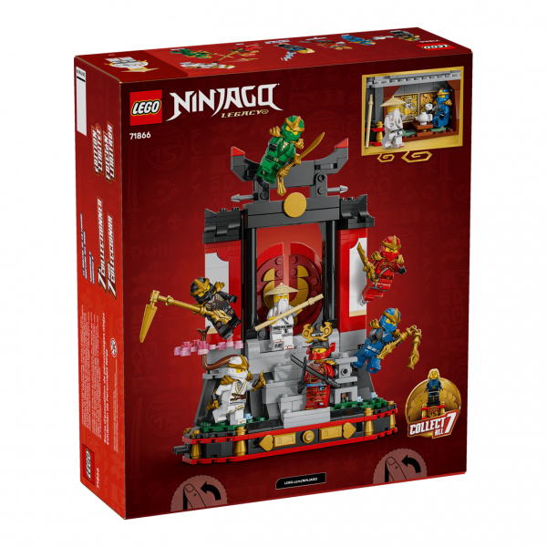 LEGO Ninjago Ninja Character Display 15th Anniversary (71866). Γιόρτασε την 15η επέτειο της τηλεοπτικής σειράς LEGO® NINJAGO® με αυτήν τη βάση έκθεσης σε μορφή μοναστηριού νίντζα με 8 μίνι φιγούρες. Διαθέτει πύλη που ανοίγει, μια κερασιά καλυμμένη με άνθη και αίθουσα τσαγιού. Οι μίνι φιγούρες είναι χαρακτήρες από τη σεζόν 1: Κάι, Ζέιν, Κόουλ, Τζέι, Λόιντ, Γου και Σαμουράι Χ και, για πρώτη φορά, η μίνι φιγούρα του Μάστερ της Αστραπής σε ξεχωριστή βάση. Τα παιδιά μπορούν να κατασκευάζουν κάθε σετ παιχνιδιού με αυτοπεποίθηση χρησιμοποιώντας την εφαρμογή LEGO Builder – ζουμάρουν και περιστρέφουν σε 3D και παρακολουθούν την πρόοδο με απλές ψηφιακές οδηγίες.