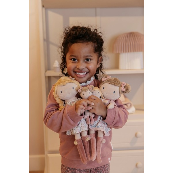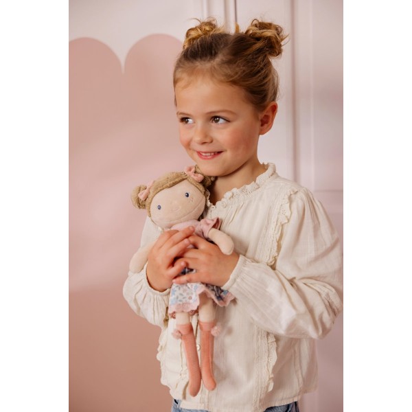 Με το μαλακό σώμα της, τα χαριτωμένα κοτσιδάκια, το χαρούμενο λουλουδένιο φορεματάκι της και τα μικρά μποτάκια με πομ-πομ, η Rosa είναι έτοιμη για αγκαλιές, παιχνίδι φαντασίας και ζεστές στιγμές αγάπης.