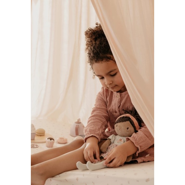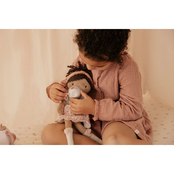 Με το μαλακό σώμα της, το χαρούμενο φλοράλ φορεματάκι και την παιχνιδιάρικη κοτσίδα, η Evi είναι ιδανική για αγκαλιές, παιχνίδι φαντασίας και τρυφερή παρέα.