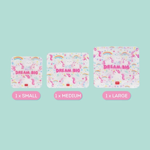 Δεν φεύγετε ποτέ από το σπίτι χωρίς κάτι να τσιμπολογήσετε; Ετοιμάστε τα σνακ σας με στυλ με τα σακουλάκια σνακ από τη Legami. Σε 3 μεγέθη: Μικρή, Μεσαία, Μεγάλη. Αεροστεγές κλείσιμο με zip. Επαναχρησιμοποιούμενες, κατάλληλες για πλυντήριο πιάτων. Ιδανικές και για σχολικά γεύματα.