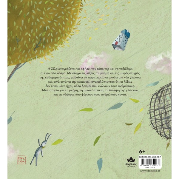 Η μικρή Σίλα αφήνει πίσω της τον τόπο που γνώριζε, παίρνει μαζί της μόνο τον αγαπημένο της κούνελο και ξεκινά ένα ταξίδι σε έναν καινούργιο κόσμο. Μέσα από τις περιπέτειες και τις καθημερινές στιγμές, μαθαίνει να ακούει, να παρατηρεί, να κατανοεί και να αγαπά τη νέα γλώσσα. Σιγά-σιγά ανακαλύπτει ότι οι λέξεις δεν είναι μόνο ήχοι· είναι γέφυρες που ενώνουν τους ανθρώπους και δίνουν χώρο, φωνή και ρίζες σε κάθε παιδί.