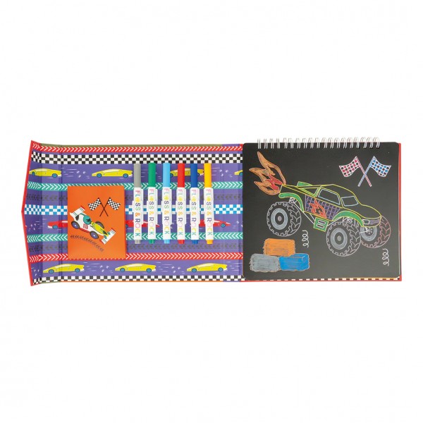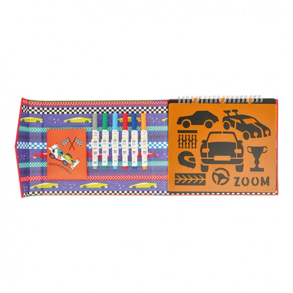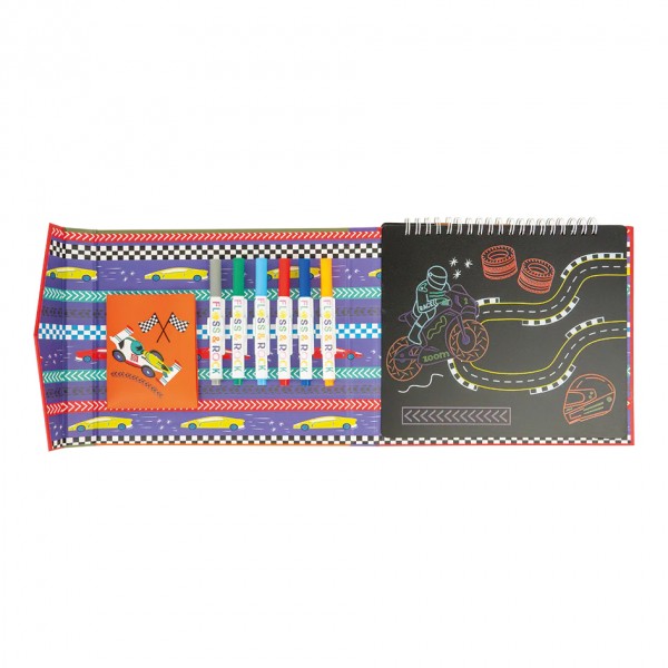 Chalk board sketchbook από την αγγλική εταιρεία Floss & Rock. Διασκεδαστικός πίνακας κιμωλίας σε μορφή βιβλίου! Αυτό το υπέροχο βιβλίο σκίτσων περιέχει 8 σελίδες. 5 σελίδες με έτοιμες έγχρωμες εικονογραφήσεις, συν 3 απλές σελίδες έτοιμες για ελεύθερο σχέδιο! Υπάρχει επίσης ένα φύλλο ιχνηλασίας και ένα σούπερ φύλλο στένσιλ. Και τα δύο αυτά φύλλα μπορούν να αφαιρεθούν και να κουμπωθούν στη σπειροειδή βιβλιοδεσία όπου κι αν επιλέξετε! Το τετράδιο συνοδεύεται από 6 χρωματιστά στυλό κιμωλίας και ένα εύχρηστο πανί καθαρισμού για να σκουπίζετε τις σελίδες όταν τελειώσετε, έτοιμοι να ξεκινήσετε ξανά και να συνεχίσετε με τη δημιουργικότητά σας την επόμενη φορά! Οι σελίδες εκτυπώνονται με φυτικά μελάνια και όλο το χαρτί, η κάρτα, το πλαστικό και το μέταλλο είναι ανακυκλώσιμα.