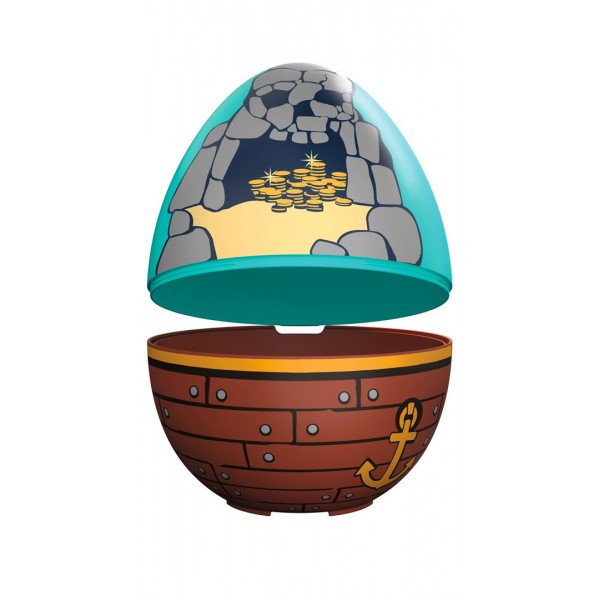Τα νέα αυγά PLAYMOBIL προσφέρουν ακόμα μεγαλύτερη διασκέδαση! Κάθε χρωματιστό αυγό κρύβει πολλές εκπλήξεις: Δύο φιγούρες, πολλά αξεσουάρ και ένα μικρό σκηνικό παιχνιδιού που μπορεί να συναρμολογηθεί αμέσως χρησιμοποιώντας τα δύο μέρη του. Ένας πειρατής έρχεται με τον καράβι του για να διεκδικήσει από τον αντίπαλό του τον θησαυρό! Το κανόνι στη σπηλιά του θησαυρού είναι γεμάτο, τα σπαθιά είναι έτοιμα – η μονομαχία αρχίζει! Το αυγό μπορεί να χρησιμοποιηθεί και ως κουμπαράς.
