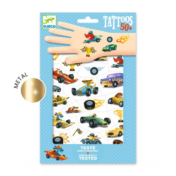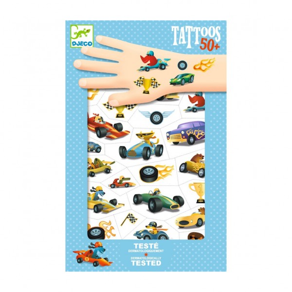 Τα τατουάζ της εταιρείας Djeco θα ενθουσιάσουν τους μικρούς μας φίλους! Είναι δερματολογικά ελεγμένα και η εφαρμογή τους είναι πολύ εύκολη, απλά πιέζετε το σχέδιο της επιλογής σας στο δέρμα χρησιμοποιώντας νερό. Κατάλληλο για ηλικίες από 3 ετών και άνω. Περιέχονται δύο κάρτες με 50 διαφορετικά σχέδια.