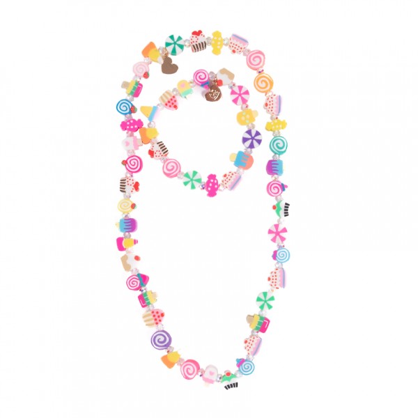 Παιδικό σετ κολιέ και βραχιολιού από την εταιρεία Great Pretenders που φέρνει τη γλύκα των αγαπημένων λιχουδιών στο παιδικό στυλ. Το σετ ξεχωρίζει για τις πολύχρωμες χάντρες σε σχήματα εμπνευσμένα από γλυκά, παγωτά και λαχταριστές λιχουδιές, που εναλλάσσονται δημιουργώντας ένα χαρούμενο και παιχνιδιάρικο αποτέλεσμα. Οι ζωηρές αποχρώσεις δίνουν ένταση και φρεσκάδα σε κάθε εμφάνιση, κάνοντας το σύνολο ιδανικό για καθημερινό παιχνίδι ή γιορτινές στιγμές. Ελαφρύ και άνετο στη χρήση, φοριέται εύκολα και ολοκληρώνει με στυλ κάθε παιδικό σύνολο. Παράλληλα, ενθαρρύνει τη δημιουργική έκφραση και το παιχνίδι ρόλων, καθώς τα παιδιά διαμορφώνουν το προσωπικό τους ύφος με φαντασία και χαρά. Μια απολαυστικά χαριτωμένη επιλογή που προσθέτει χρώμα και ζωντάνια σε κάθε παιδική εμφάνιση.