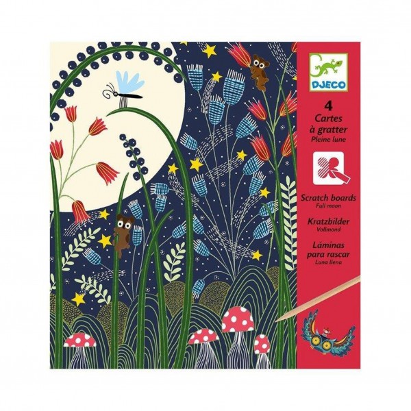 Scratch boards από την εταιρεία Djeco. Ξύνοντας με ένα ειδικό ξύλινο μολύβι ανακαλύπτετε υπέροχες εικόνες! Ιδιαίτερες καλλιτεχνικές κάρτες της που ενισχύουν την λεπτή κινητικότητα του παιδιού καθώς και την αισθητική του νοημοσύνη. Περιλαμβάνει 4 κάρτες.
