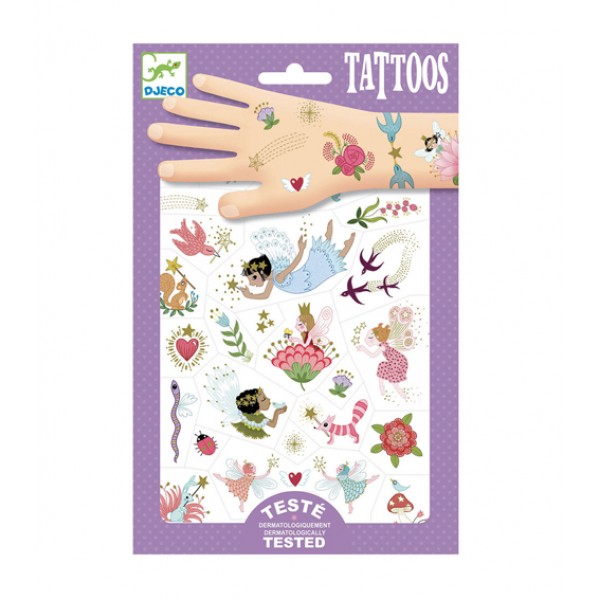 Τα τατουάζ της εταιρείας Djeco θα ενθουσιάσουν τους μικρούς μας φίλους! Είναι δερματολογικά ελεγμένα και η εφαρμογή τους είναι πολύ εύκολη, απλά πιέζετε το σχέδιο της επιλογής σας στο δέρμα χρησιμοποιώντας νερό. Κατάλληλο για ηλικίες από 3 ετών και άνω. Περιέχονται δύο κάρτες με 50 διαφορετικά σχέδια.
