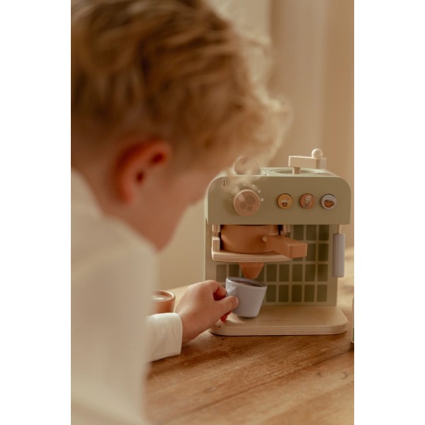 Αυτή η ξύλινη μηχανή καφέ προσφέρει στους μικρούς μπαρίστα μια ολοκληρωμένη εμπειρία παιχνιδιού. Τα παιδιά μπορούν να αλέσουν τους κόκκους, να βάλουν κάψουλες καφέ και να ανακατέψουν τα ροφήματά τους όπως οι επαγγελματίες.
