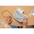Ας πλέξουμε! Πάρε το κορδόνι και πέρασέ το μέσα από τις μικρές τρύπες που έχουν οι κάρτες για να δημιουργήσεις τις λεπτομέρειες της εικόνας. Ακολούθησε το μοτίβο των 5 χάρτινων καρτών.