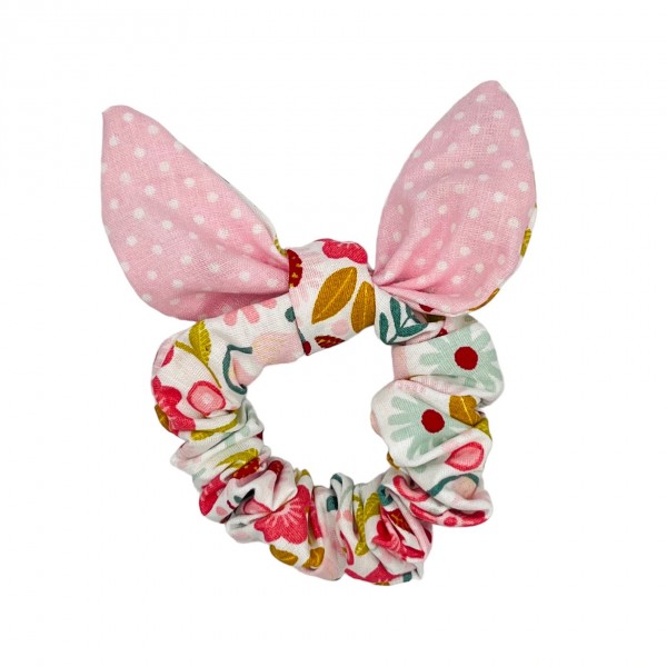 Χειροποίητο λαστιχάκι μαλλιών scrunchie Tonto, με βαμβακερό ύφασμα και πεταχτά αυτάκια.