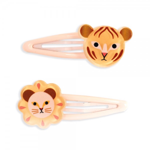 Σετ δύο παιδικών κλιπ μαλλιών από την εταιρεία Djeco, ιδανικό για να προσθέσετε μια εξωτική νότα σε κάθε παιδικό χτένισμα. Το σετ περιλαμβάνει δύο μεταλλικά κλιπ, διακοσμημένα με ζωάκια της ζούγκλας, ένα τιγράκι και ένα λιονταράκι. Εξασφαλίζουν άνεση και σταθερό, απαλό κράτημα καθ’ όλη τη διάρκεια της ημέρας, χαρίζοντας παιχνιδιάρικη διάθεση και στυλ.