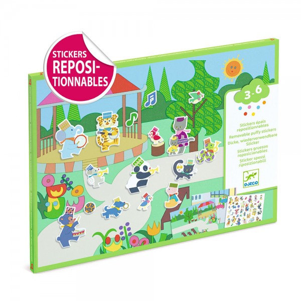 Μεγάλος φάκελος δημιουργικών δραστηριοτήτων από την εταιρεία Djeco, που προσκαλεί τα παιδιά να φτιάξουν τη δική τους πολύχρωμη παρέλαση! Με δύο μεγάλα εικονογραφημένα φόντα και περισσότερα από 30 επαναχρησιμοποιούμενα αυτοκόλλητα, οι μικροί δημιουργοί ζωντανεύουν σκηνές γεμάτες μουσική, τύμπανα, τρομπέτες, φιλαρμονικές μπάντες και ενθουσιώδες κοινό. Τα αφράτα αυτοκόλλητα είναι ειδικά σχεδιασμένα για παιδικά χεράκια και μετακινούνται ξανά και ξανά, ώστε κάθε φορά να προκύπτει μια νέα ιστορία. Ένα παιχνίδι που συνδυάζει δημιουργικότητα και ελεύθερο παιχνίδι, καλλιεργώντας τη φαντασία και τη χαρά της αφήγησης. Περιεχόμενα συσκευασίας: 2 μεγάλα εικονογραφημένα ταμπλό (21 x 29,5 εκ.) και περισσότερα από 30 επαναχρησιμοποιούμενα αφράτα αυτοκόλλητα.