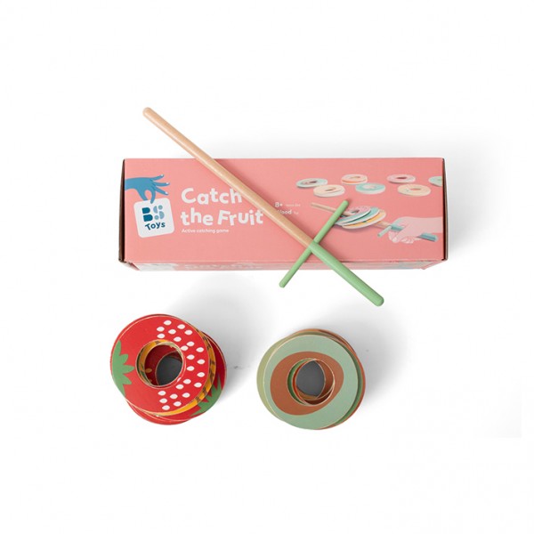 Από τα πιο διασκεδαστικά παιχνίδια της BS Toys. To Catch the Fruit θα το λατρέψουν όλοι, μικροί και μεγάλοι. Πετάξτε τα δισκάκια φρούτων στον αέρα και αφήστε τον συμπαίκτη σας να προσπαθήσει να τα πιάσει με το μπαστούνι του. Έξτρα tip, πιάνοντας ζευγάρια φρούτων κερδίζεις περισσότερους πόντους! Ποια ομάδα θα κερδίσει; Υλικό: ξύλο.