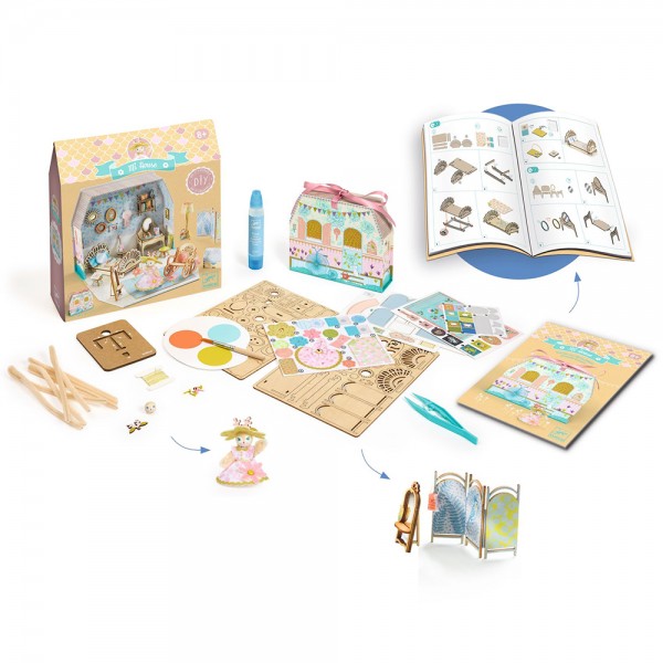 Δημιουργικό σετ μινιατούρας από την εταιρεία Djeco, που εισάγει τα παιδιά στον κόσμο της κατασκευής μέσα από τη δημιουργία ενός μικρού σπιτιού με τον κάτοικό του. Με τη βοήθεια λεπτομερών οδηγιών και βίντεο tutorial, τα παιδιά καθοδηγούνται βήμα-βήμα για να μάθουν διαφορετικές τεχνικές, όπως η ζωγραφική, η συναρμολόγηση και η συγκόλληση, ενώ διασκεδάζουν δημιουργώντας. Όταν η κατασκευή ολοκληρωθεί, το κουκλόσπιτο κλείνει και φυλάει μέσα του τον χαρακτήρα, τα έπιπλα και τα αξεσουάρ που έφτιαξε το παιδί, μετατρέποντάς το σε ένα μικρό «θησαυροφυλάκιο». Ένα πρωτότυπο και εκπαιδευτικό σετ που καλλιεργεί τη συγκέντρωση, τη λογική σκέψη και την ακρίβεια, ενώ παράλληλα αφήνει χώρο για φαντασία και ονειροπόληση.