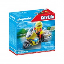 Διασώστης με μοτοσικλέτα από τη σειρά City Life. Περιλαμβάνει ποικιλία ειδών ιατρικού εξοπλισμού. Με φως που λειτουργεί (οι μπαταρίες περιλαμβάνονται).