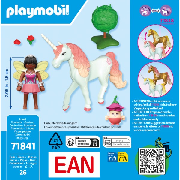 Γνώρισε τον μονόκερο Sky Rose και τη μαγευτική νεραϊδοφίλη του! Η Sky Rose γοητεύει με τη χαριτωμένη παρουσία της – κάθε της κίνηση μοιάζει να μιμείται τον απαλό χορό των σύννεφων στον ουρανό και προσκαλεί τις νεράιδες να εμπνευστούν από αυτή με θαυμαστές ιστορίες και τραγούδια. Η μαγευτική νεράιδα υποστηρίζεται από τον χαριτωμένο συνοδό της, τον Joyling, που βοηθάει με πολλή χαρά και αφοσίωση στη φροντίδα του μονόκερου. Μπορείς να αλλάζεις τη χαίτη, την ουρά και το κέρατο του μονόκερου. Έτσι μπορείς να δημιουργείς - με άλλους μονόκερους της νέας σειράς μονόκερων PLAYMOBIL - ξεχωριστούς και μοναδικούς μονόκερους!
