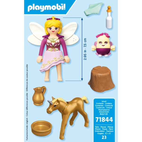 Ένα χρυσό θαύμα έφτασε στο Βασίλειο των Μονόκερων! Με λαμπερά μάτια και ασημένιο τρίχωμα, το Χρυσό πουλάρι φροντίζεται με αγάπη από τη νεράιδα και τo βοηθό της, τo Joyling. Αυτό το όμορφο σετ PLAYMOBIL διαθέτει μαγευτικά αξεσουάρ όπως κανάτα, μπουκάλι γάλακτος και λαμπερά φτερά νεράιδας. Ιδανικό για αφήγηση και μαγευτικό παιχνίδι, τα παιδιά μπορούν να δημιουργήσουν τις δικές τους παραμυθένιες περιπέτειες με αυτό το μαγικό σετ PLAYMOBIL!