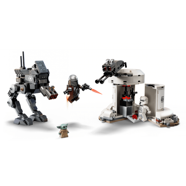 LEGO® Star Wars AT-RT Attack. Δώστε στα παιδιά την ευκαιρία να δημιουργήσουν τις δικές τους περιπέτειες από το Star Wars: The Mandalorian and Grogu™ με αυτό το σετ κατασκευής παιχνιδιού. Διαθέτει ένα αρθρωτό πεζοπόρο AT-RT με διπλό εκτοξευτή καρφιών και έναν αμυντικό πύργο με περιστρεφόμενο πυργίσκο και δικό του διπλό εκτοξευτή καρφιών. Τοποθετήστε τη LEGO® μίνι φιγούρα του Οδηγού AT-RT ή του Mandalorian στο κάθισμα του AT-RT (αφαιρέστε ένα τουβλάκι του ταμπλό για να μπορέσει η LEGO® μίνι φιγούρα του Grocu να συνοδέψει τον Mantu). Ανοίξτε τον αμυντικό πύργο και αποκαλύψτε μια οπλοθήκη και χώρο αποθήκευσης. Εξοπλίστε τον Mandalorian με το τζετ-πακ και το πιστόλι μπλάστερ και τον AT-RT Guide με ένα μπλάστερ για περισσότερη δράση μάχης. Ένα συναρπαστικό δώρο φαντασίας και περιπέτειας για αγόρια, κορίτσια και κάθε φαν του Star Wars: The Mandalorian and Grogu, ηλικίας 7 ετών και άνω, αυτό το παιχνίδι κατασκευής δίνει απίθανη έμπνευση στη φαντασία των παιδιών. Τα παιδιά μπορούν να κατασκευάζουν με αυτοπεποίθηση χρησιμοποιώντας την εφαρμογή LEGO® Builder – ζουμάρουν και περιστρέφουν σε 3D και παρακολουθούν την πρόοδο με απλές ψηφιακές οδηγίες.